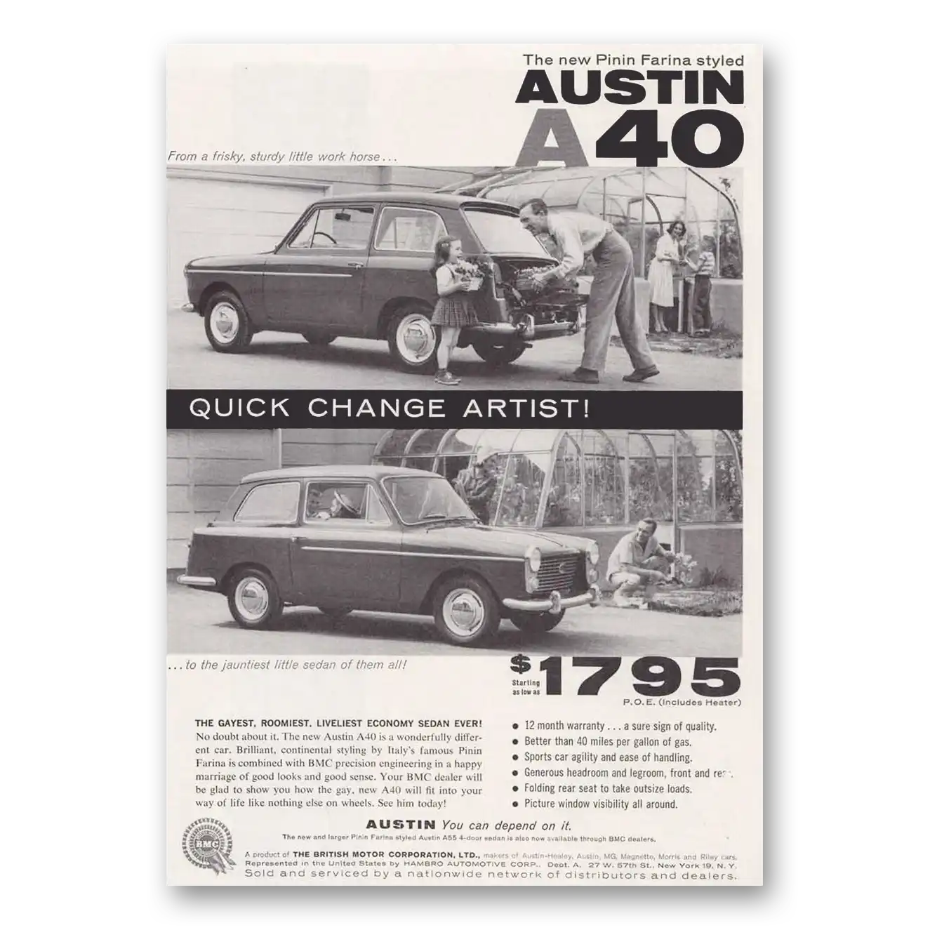 This is an original 1959 Austin A40 print ad published by British Motor Corp.