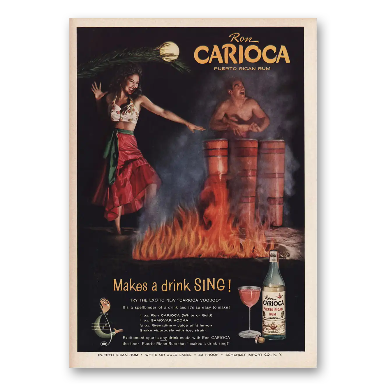 This is an original 1959 Carioca Rum print ad published by Schenley Distillers.