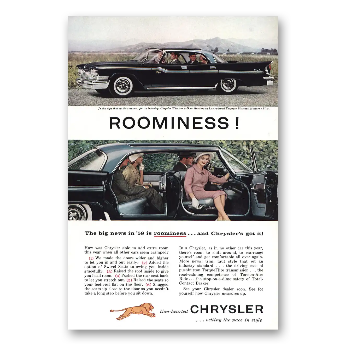 1959 Chrysler Windsor Print Ad | Roominess