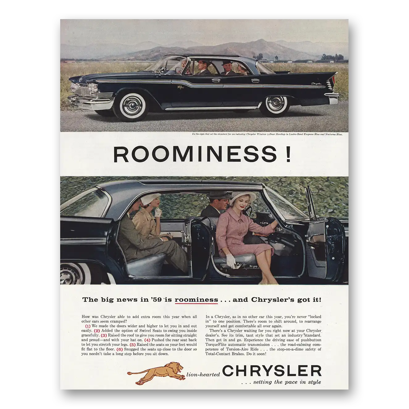 1959 Chrysler Windsor Print Ad | Roominess