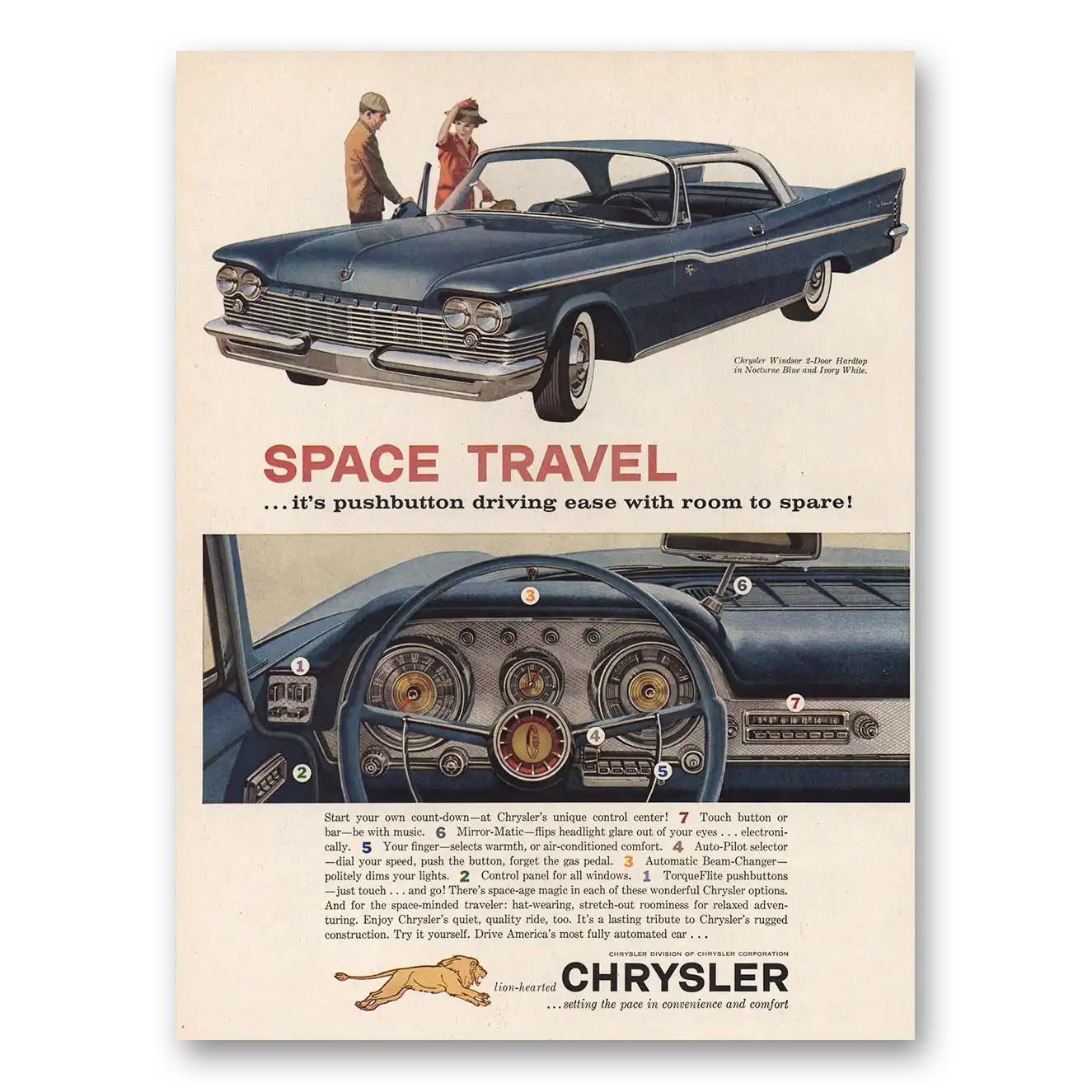 1959 Chrysler Windsor Print Ad | Space Travel