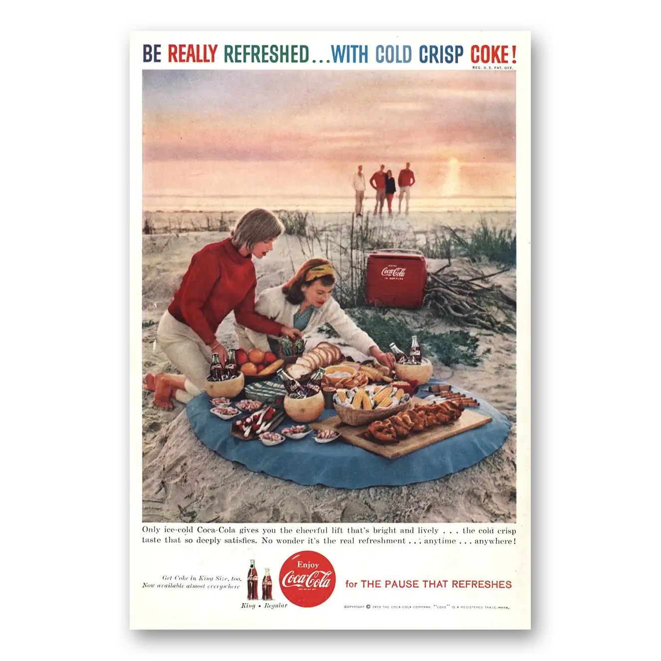 1959 Coca Cola Print Ad | Cheerful Lift Beach Picnic