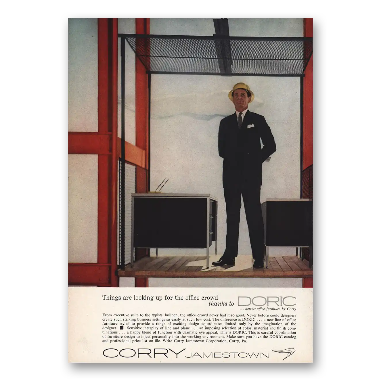 1959 Corry Jamestown Print Ad | Office Crowd