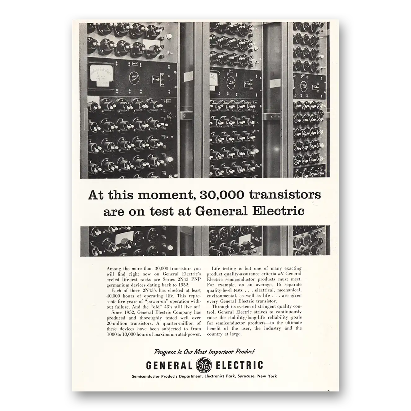 1959 General Electric Print Ad | Transistors Are On Test