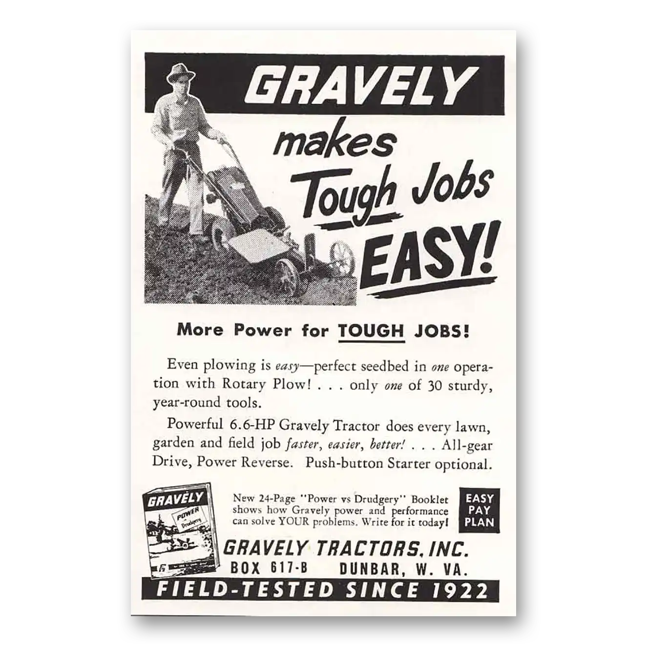 1959 Gravely Mowers Print Ad | Tough Jobs Easy