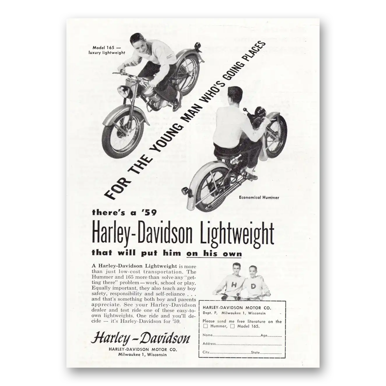 This is an original 1959 Harley Davidson 165 print ad published by Harley Davidson.