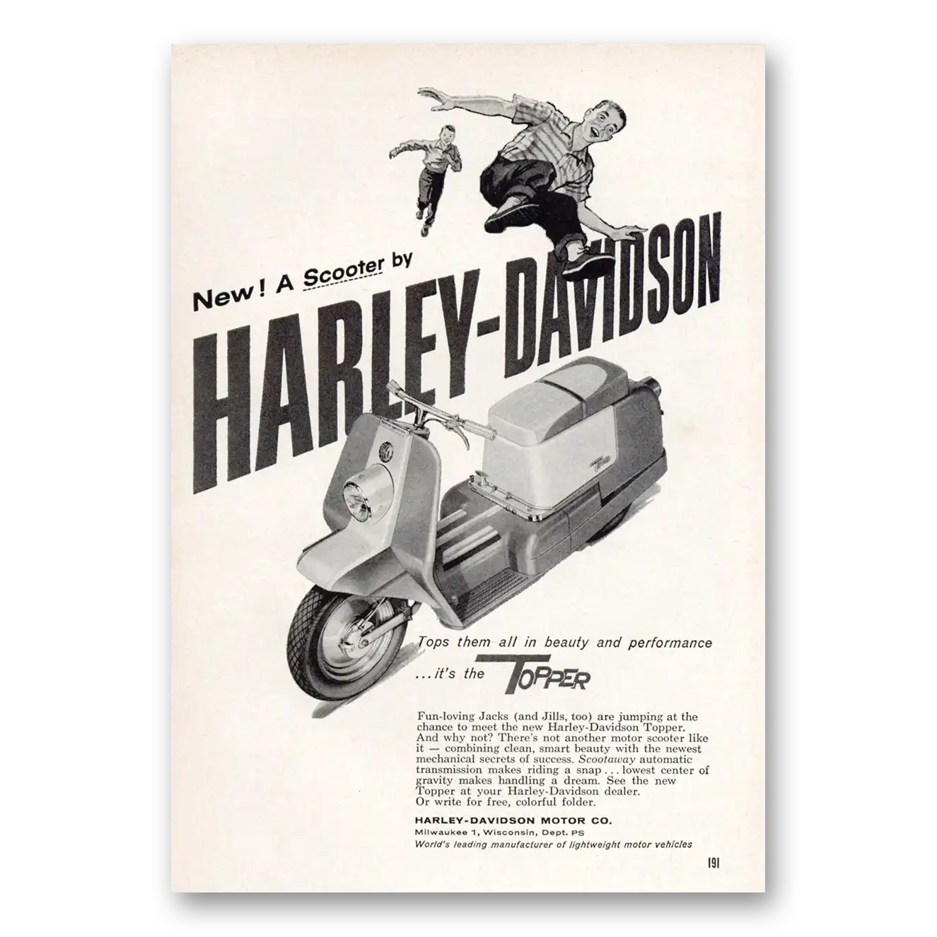 1959 Harley Davidson Topper Print Ad | Tops Them All