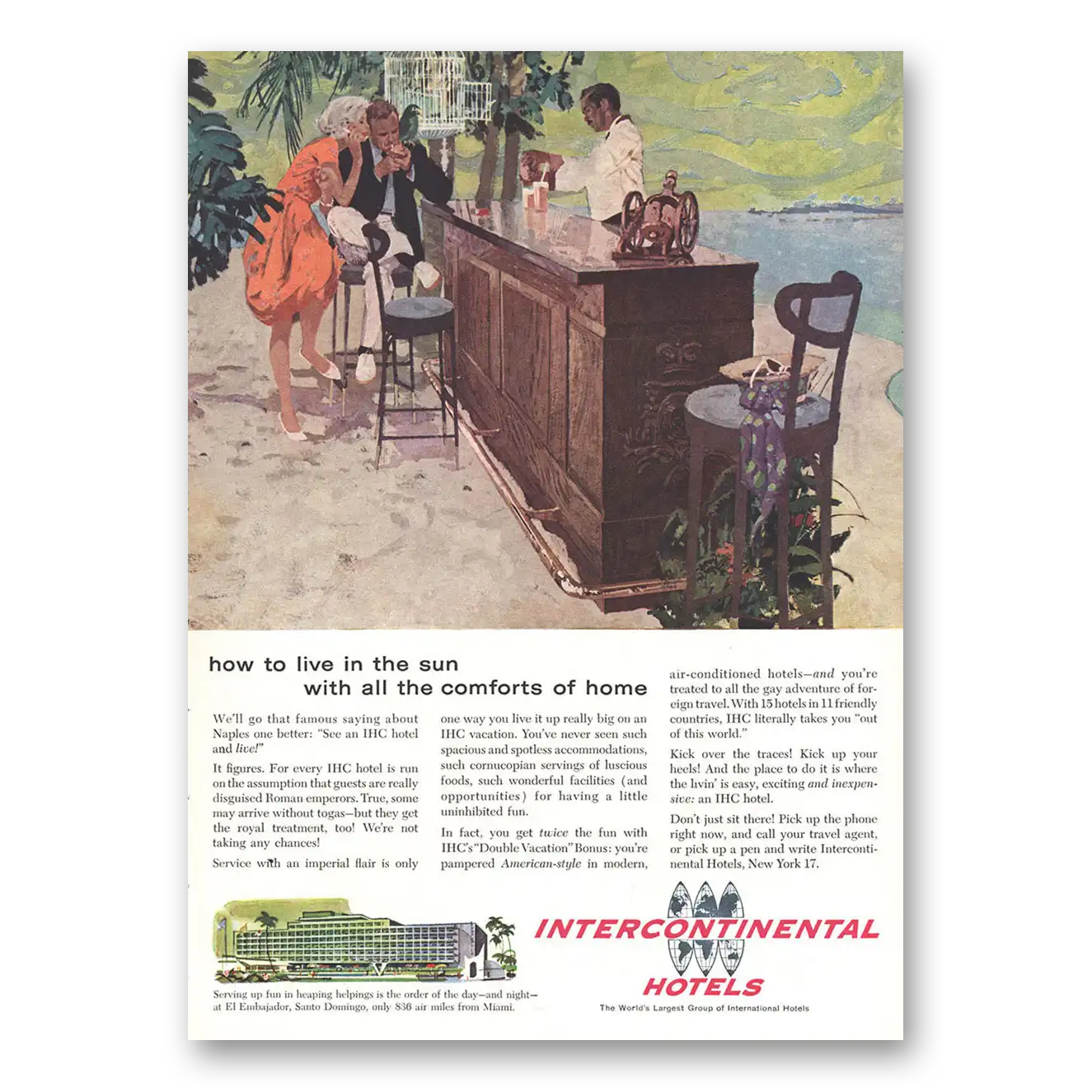 This is an original 1959 InterContinental Hotels print ad published by InterContinental Hotels.