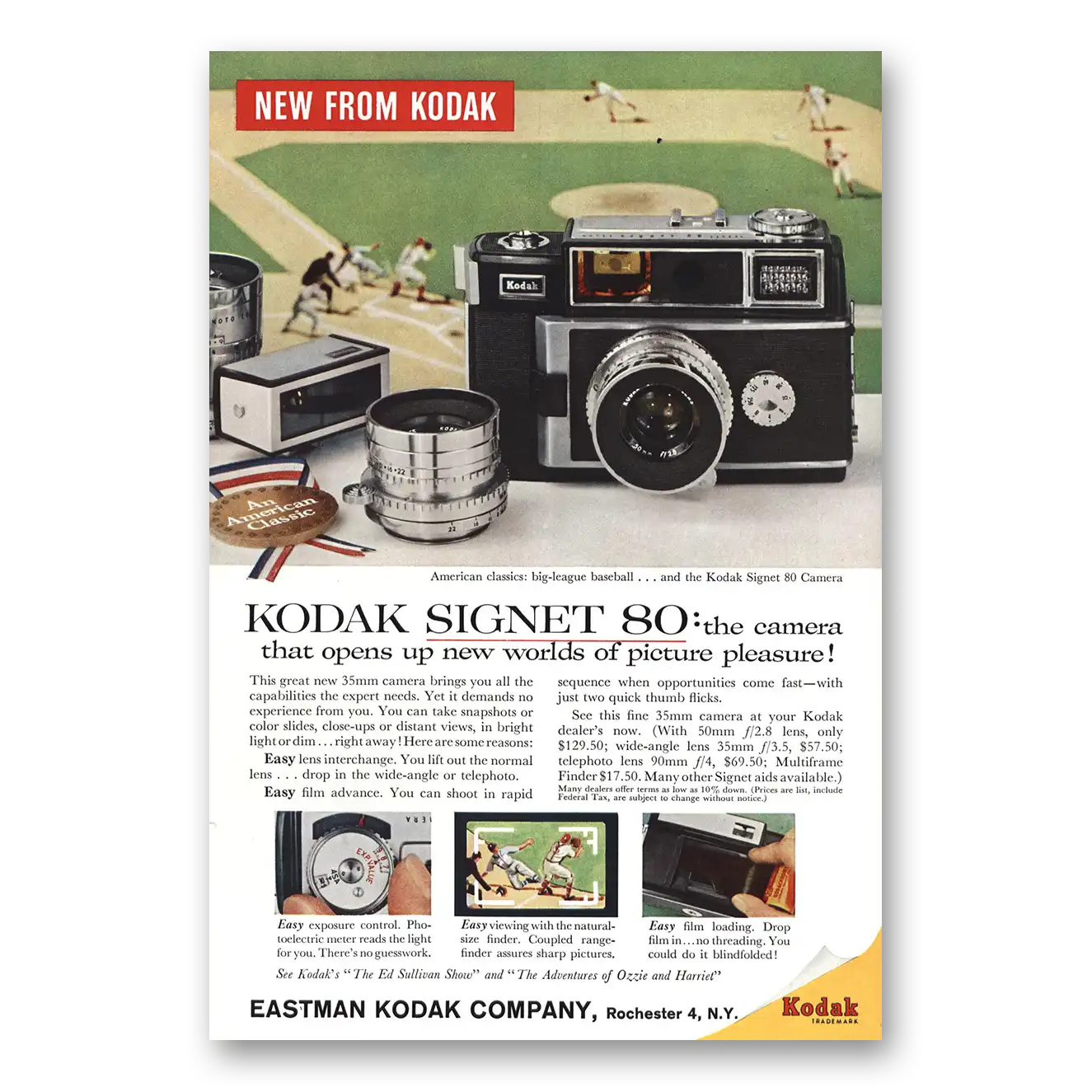 1959 Kodak Signet Camera Print Ad | Baseball