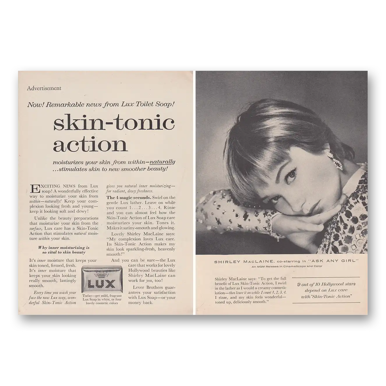 1959 Lux Soap Print Ad | Shirley Maclaine