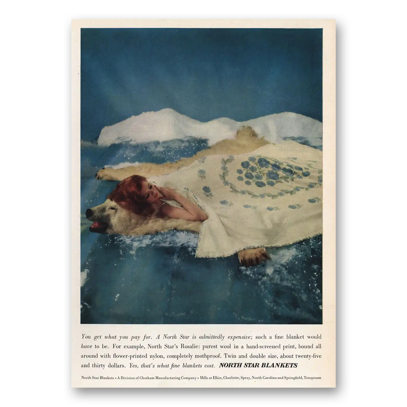 1959 North Star Blankets Print Ad | Polar Bear