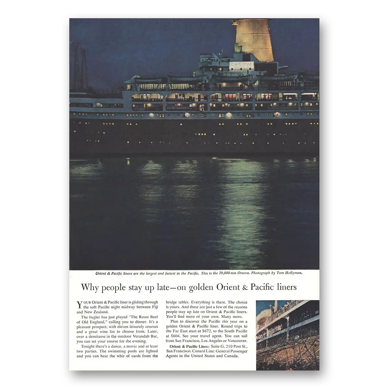 This is an original 1959 Orient & Pacific Lines print ad published by Orient & Pacific Lines.