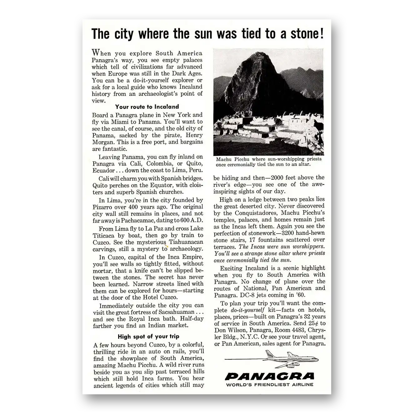 1959 Panagra Airlines Print Ad | Machu Picchu