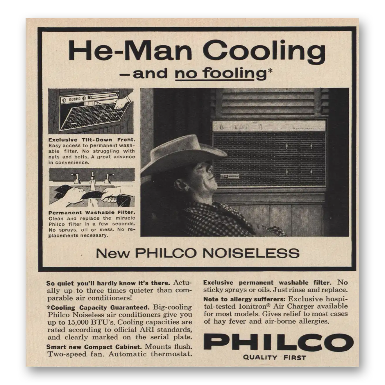 1959 Philco Air Conditioner Print Ad | He Man Cooling