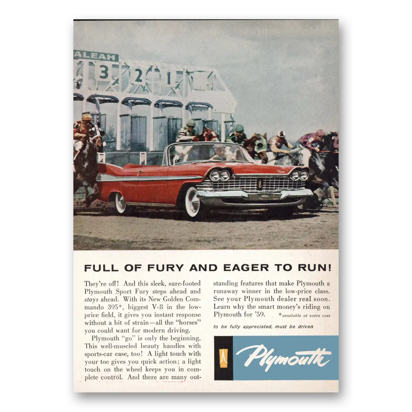 This is an original 1959 Plymouth Fury print ad published by Plymouth.