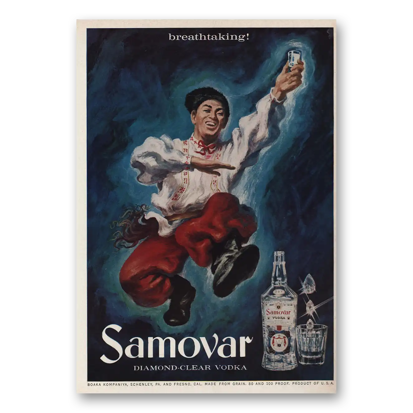 This is an original 1959 Samovar Vodka print ad published by Samovar Vodka.