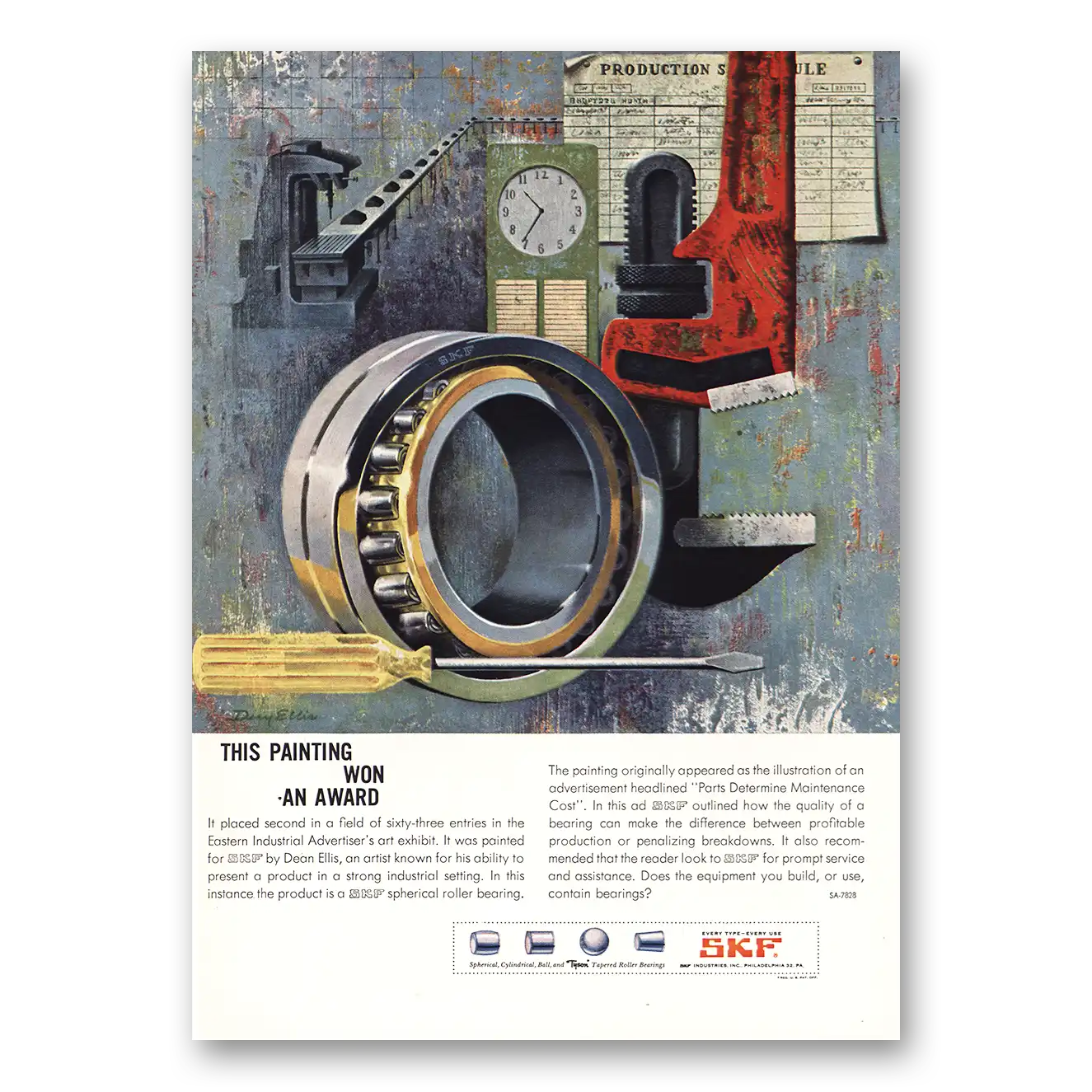 1959 SKF Ball and Roller Bearings Print Ad | Painting Won Award1959 SKF Ball and Roller Bearings Print Ad | Painting Won Award