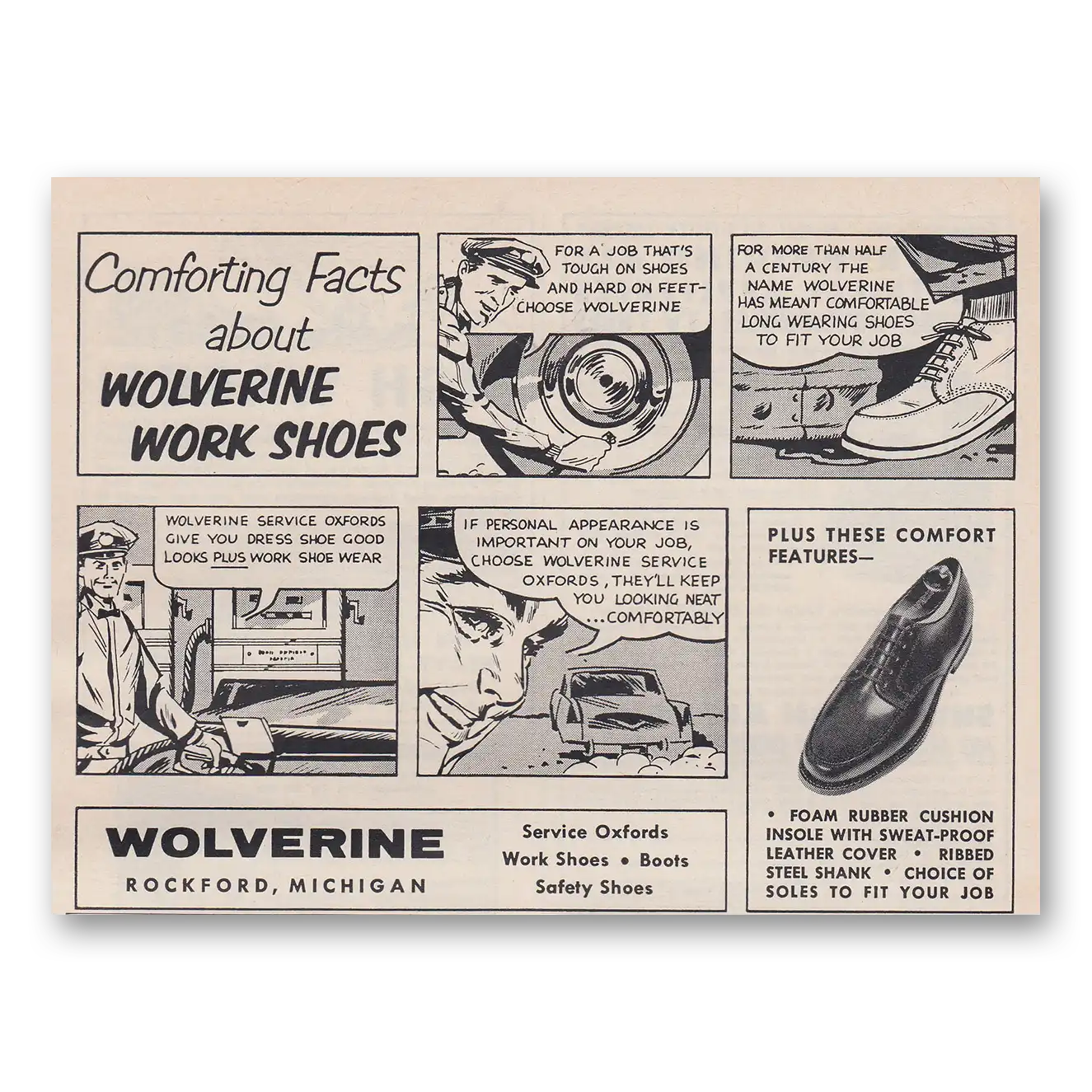 1959 Wolverine Work Shoes Print Ad | Work Shoes
