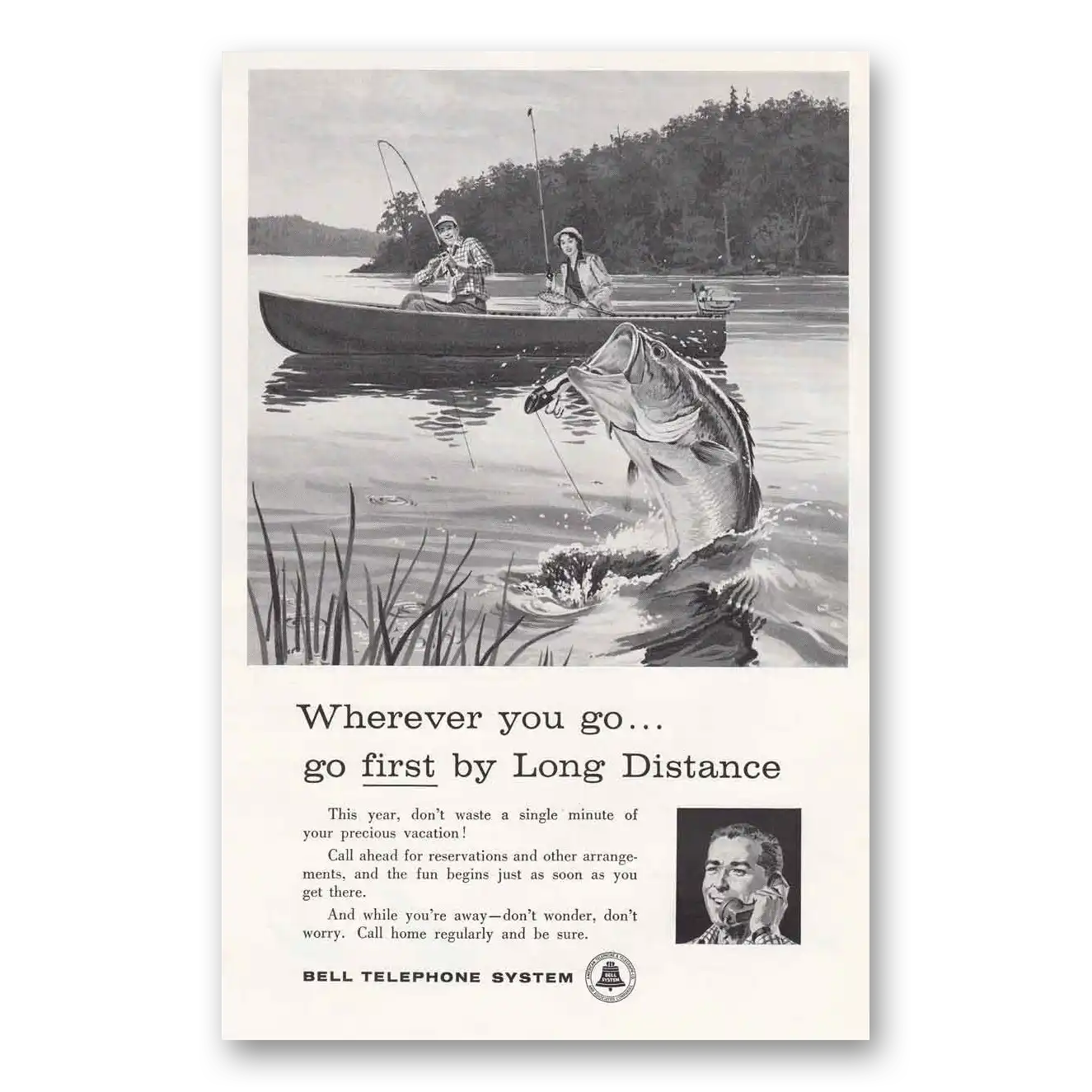 1960 Bell Telephone Print Ad | Fishing Boat