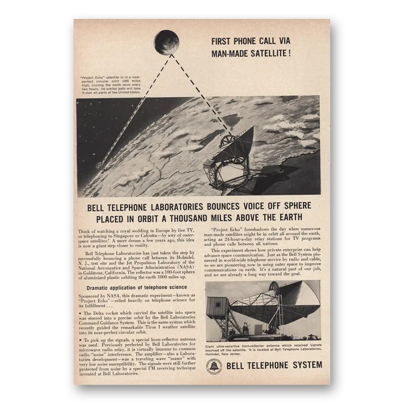 1960 Bell Telephone Print Ad | Man Made Satellite