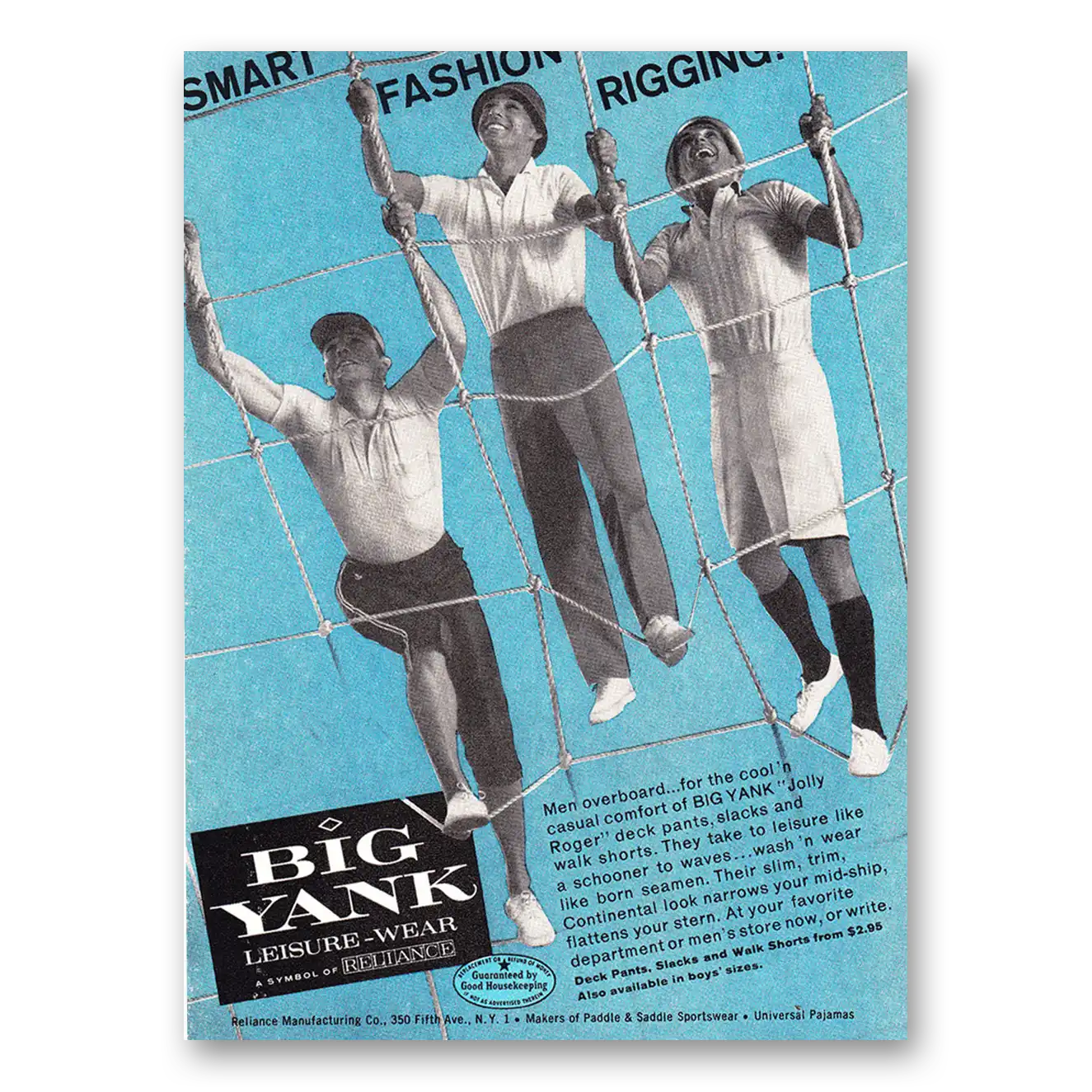 This is an original 1960 Big Yank Leisure Wear print ad published by Reliance Mfg.