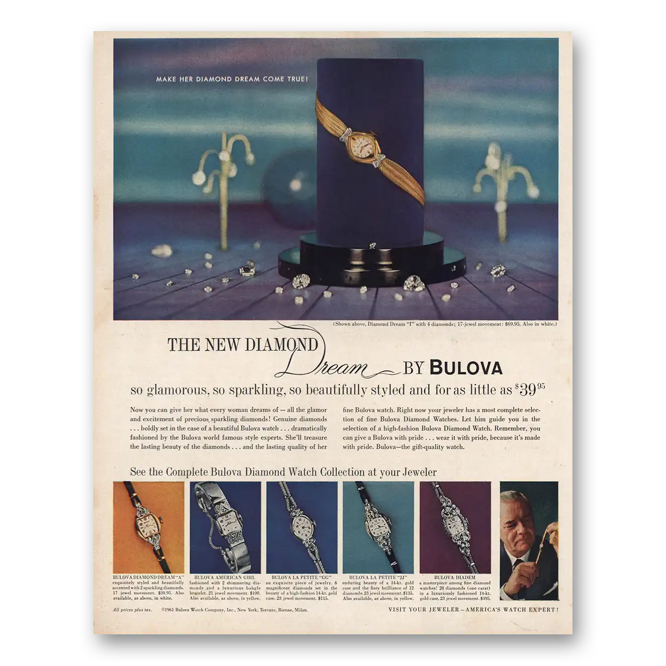 1960 Bulova Watch Print Ad | Diamond Dream