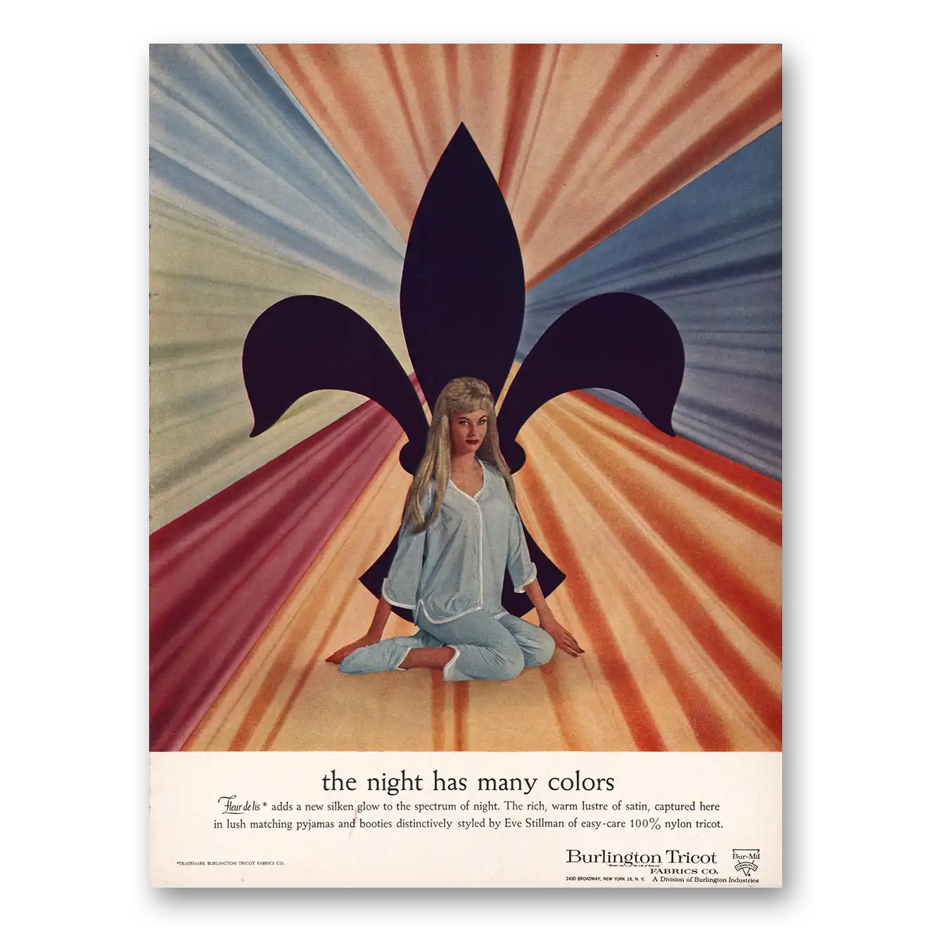 1960 Burlington Tricot Fabrics Print Ad | Night Many Colors