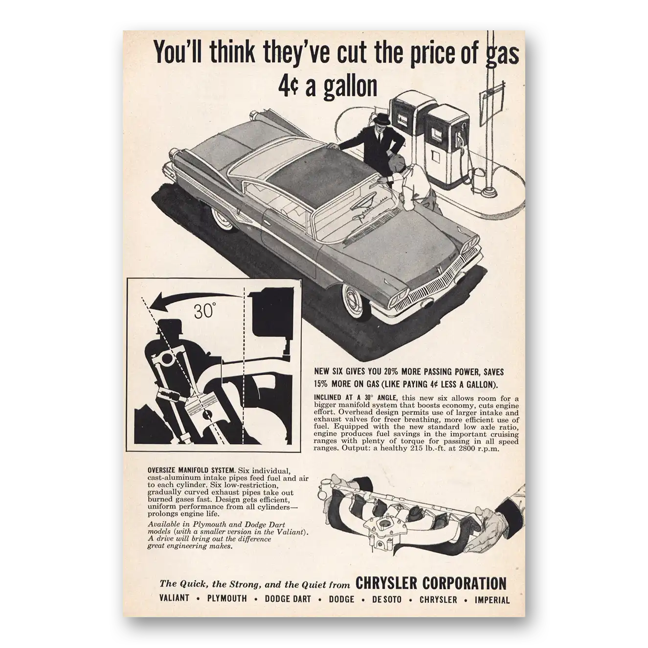 1960 Chrysler Corporation Print Ad | Cut Price Gas