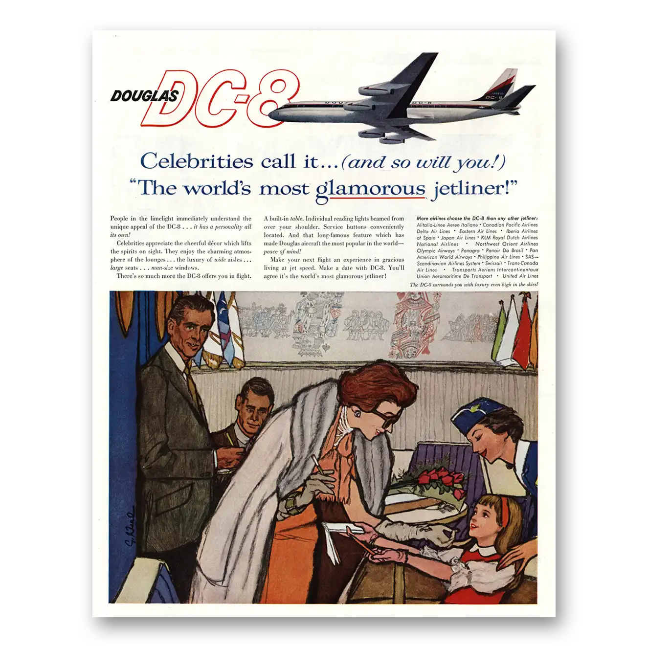 1960 Douglas DC8 Print Ad | Most Glamorous