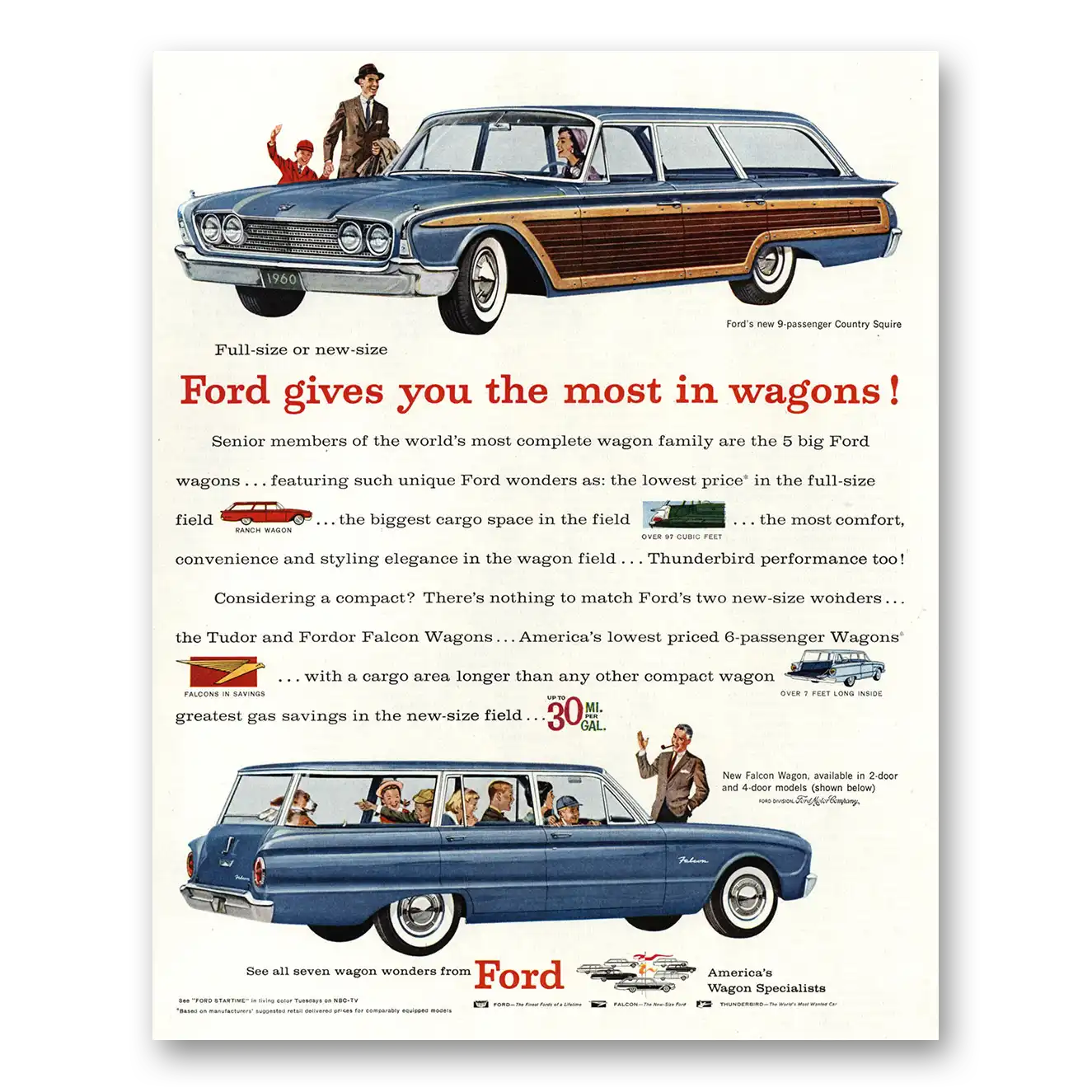 This is an original 1960 Ford Country Squire print ad published by Ford.