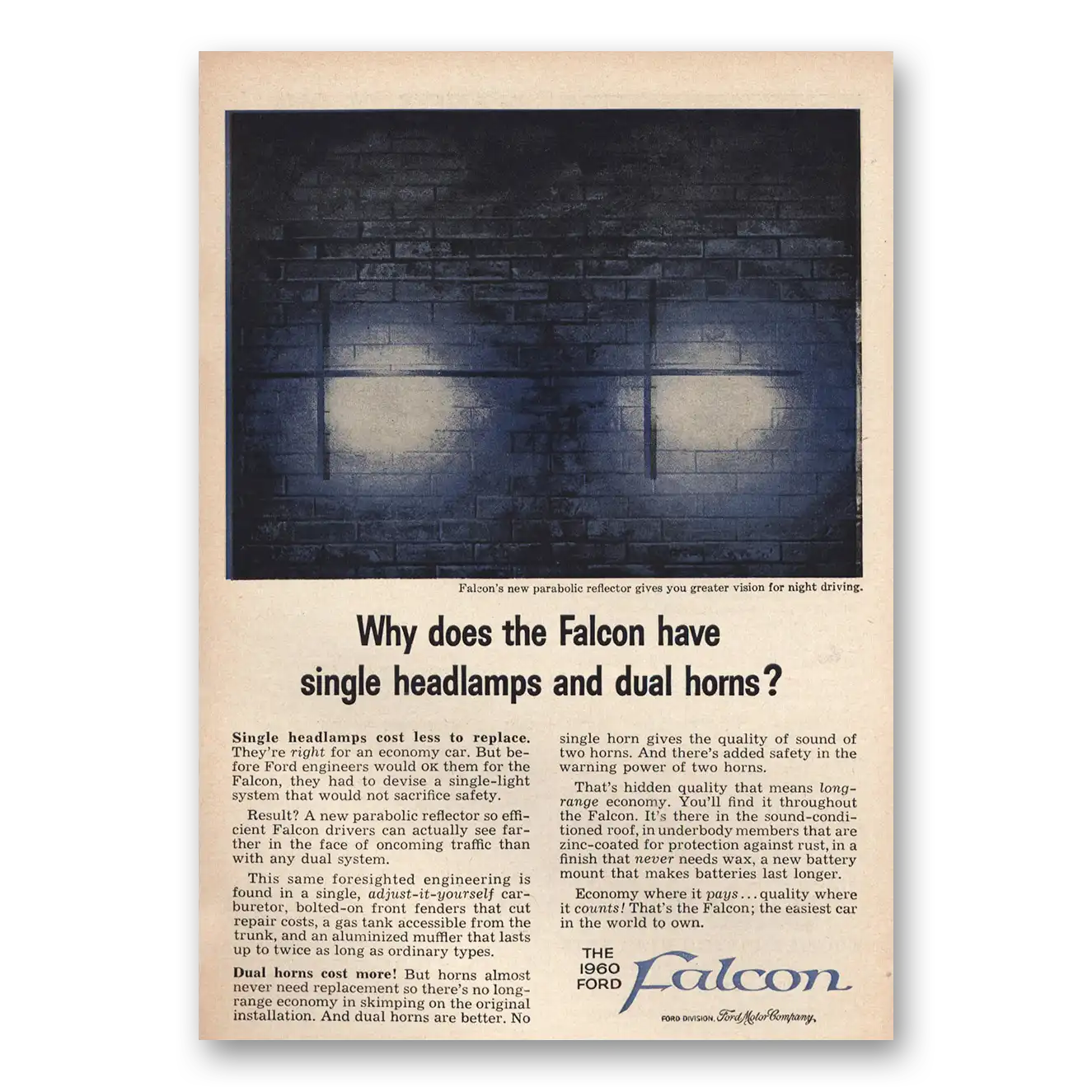 1960 Ford Falcon Print Ad | Single Headlamps