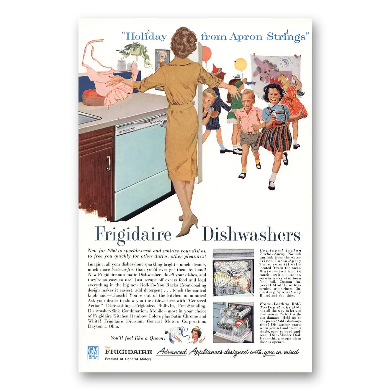 1960 Frigidaire Dishwasher Print Ad | Holiday From Apron Strings