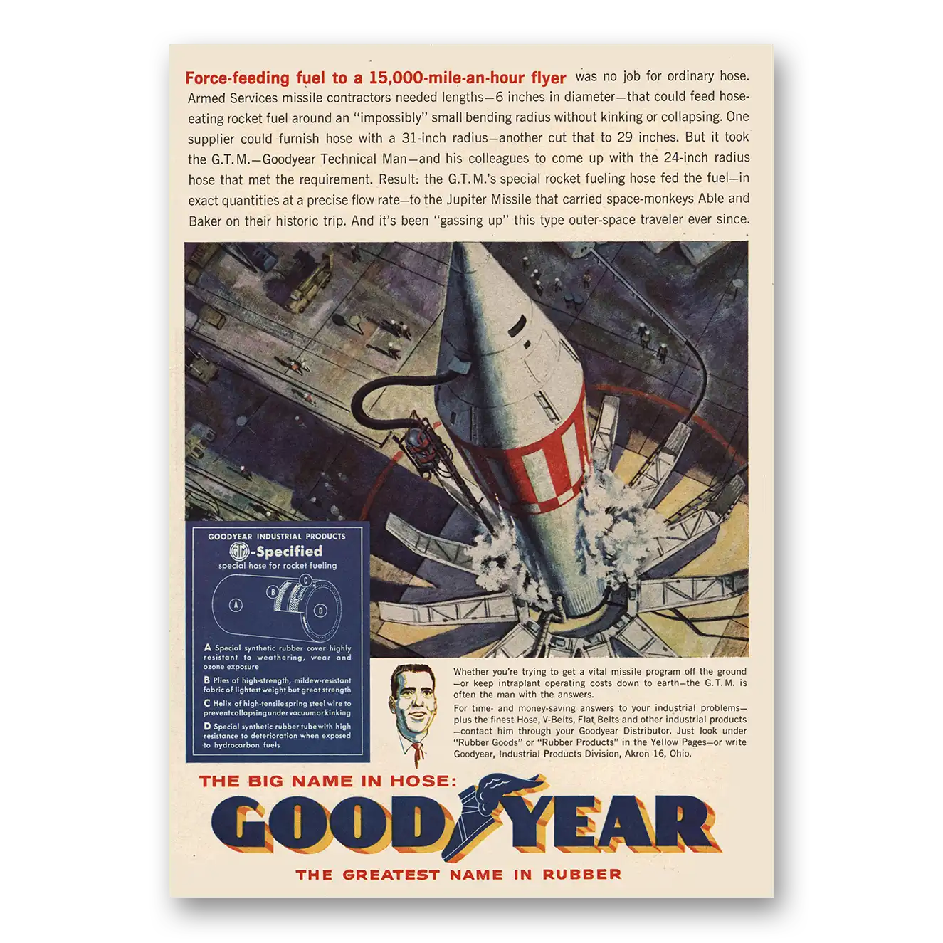 1960 Goodyear Print Ad | Force Feeding Fuel Missile