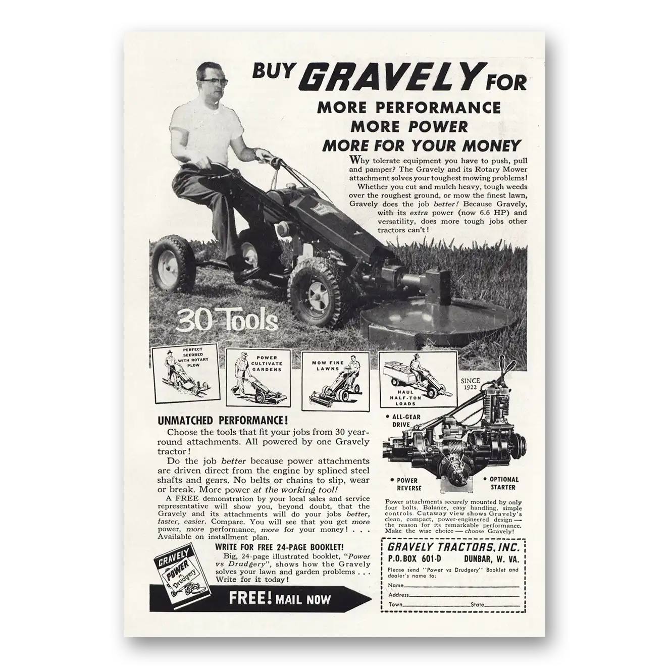 1960 Gravely Tractors Print Ad | More Performance