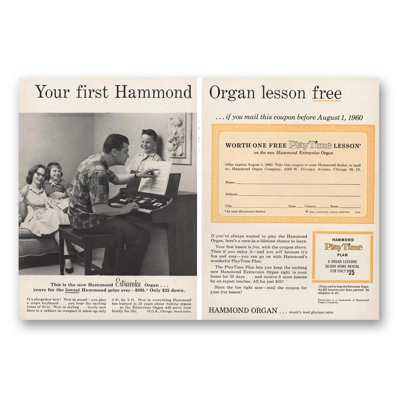 1960 Hammond Organ Print Ad | First Lesson