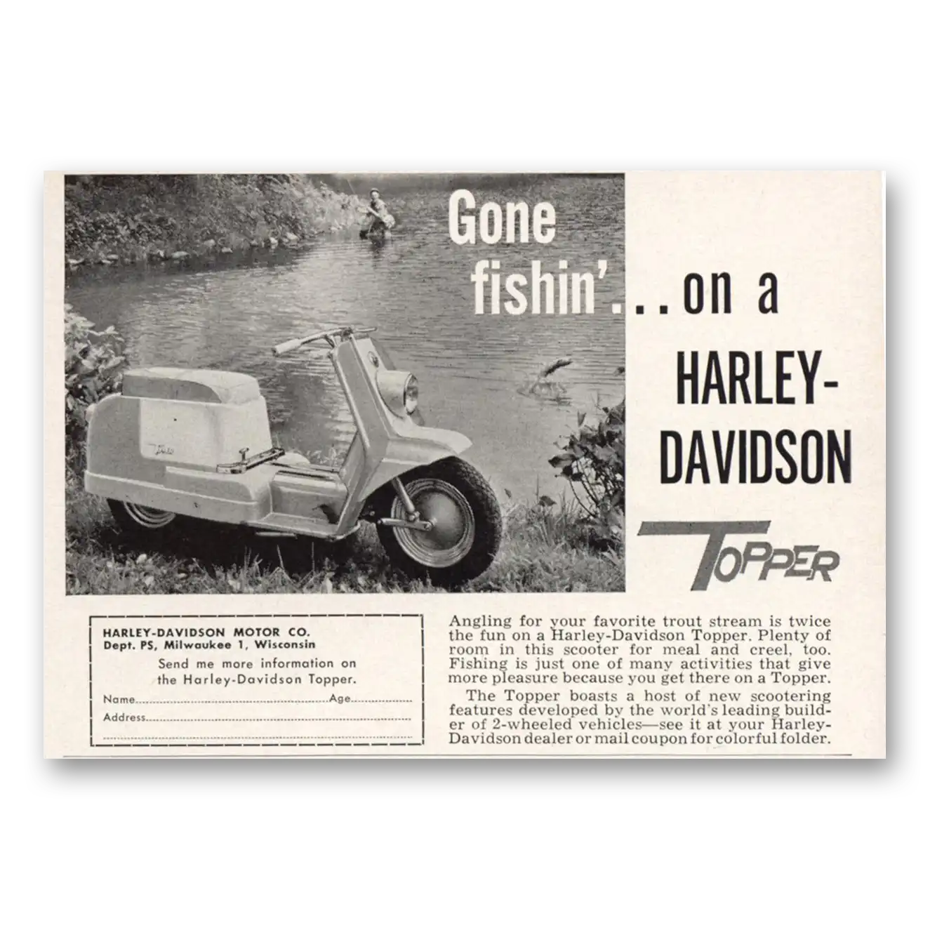 1960 Harley Davidson Topper Print Ad | Gone Fishin