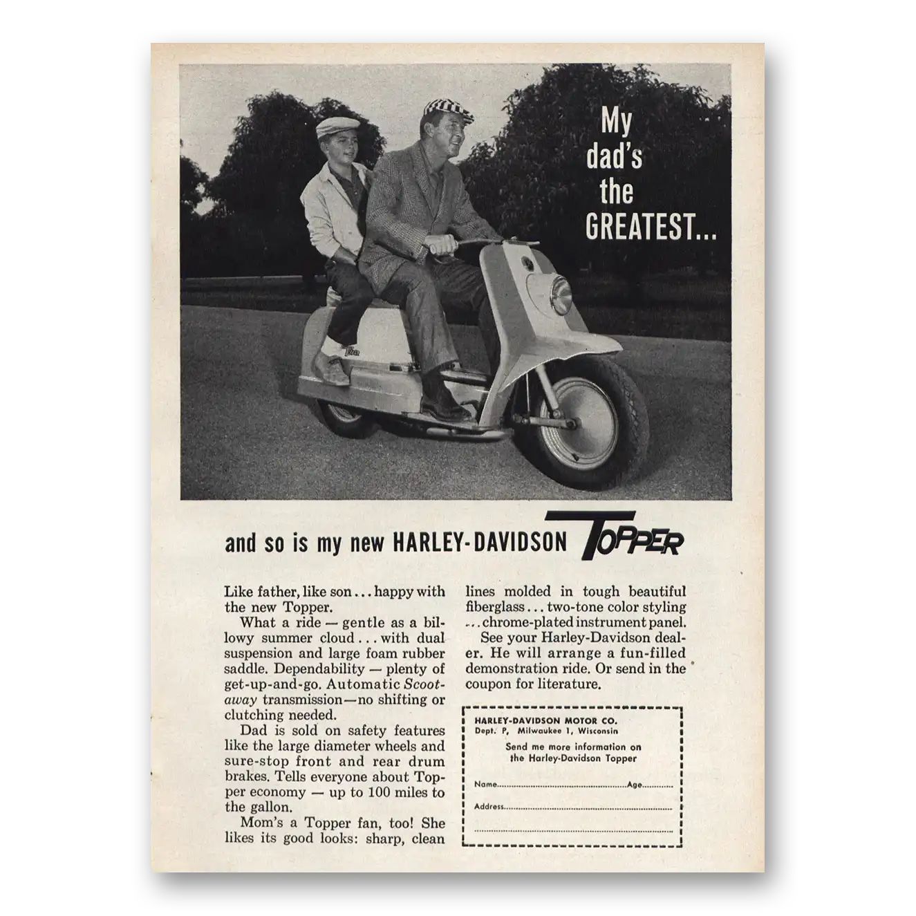 1960 Harley Davidson Topper Print Ad | My Dads Greatest