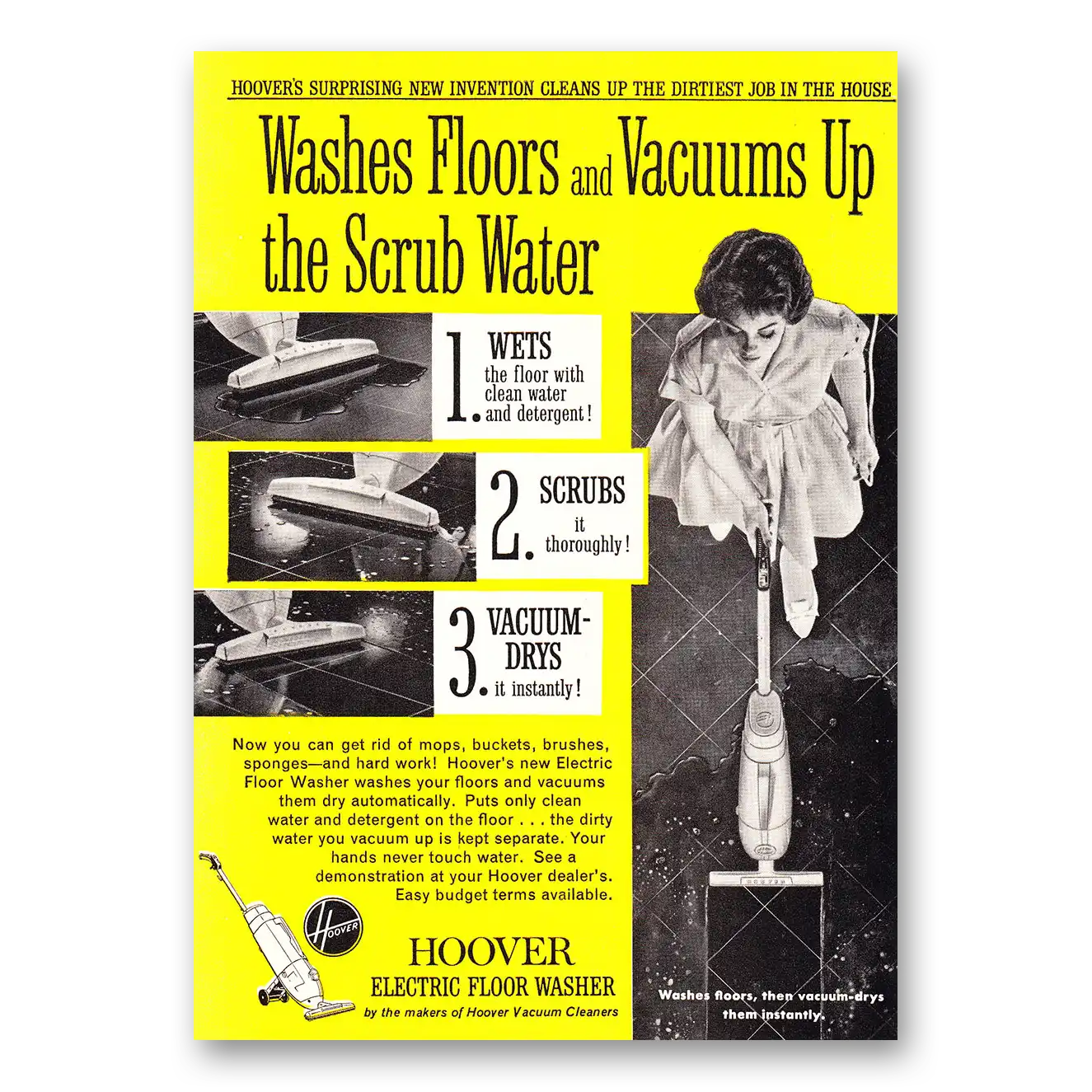1960 Hoover Vacuum Print Ad | Electric Floor