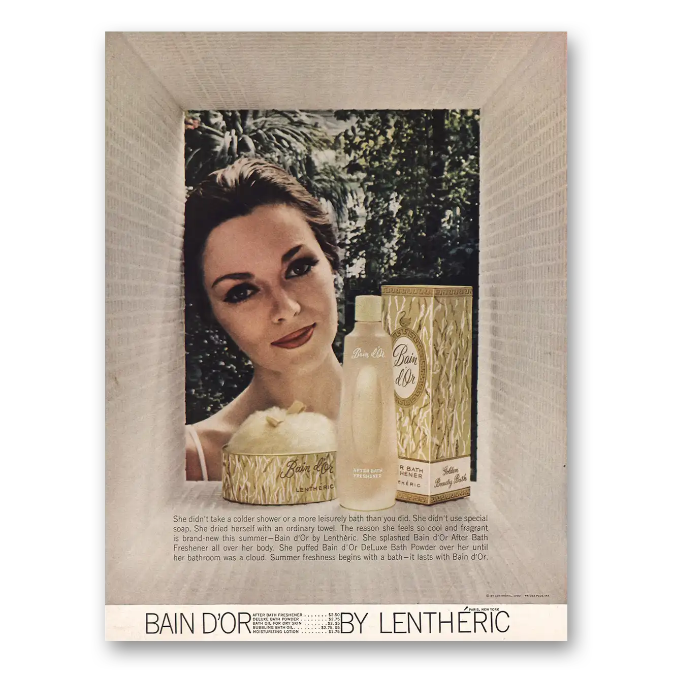 This is an original 1960 Lentheric Bain D’Or print ad published by Lentheric.