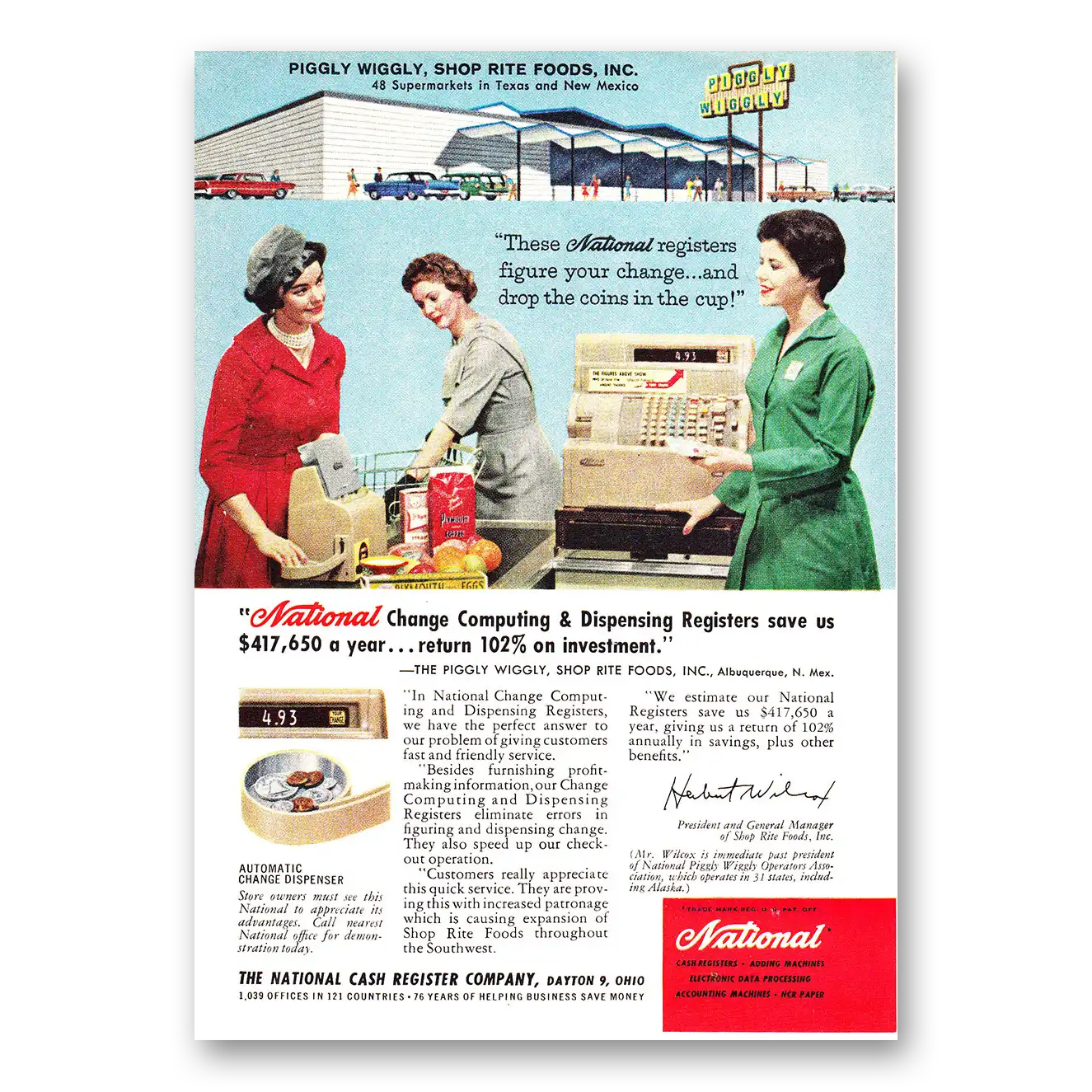 1960 National Cash Register Print Ad | Piggly Wiggly