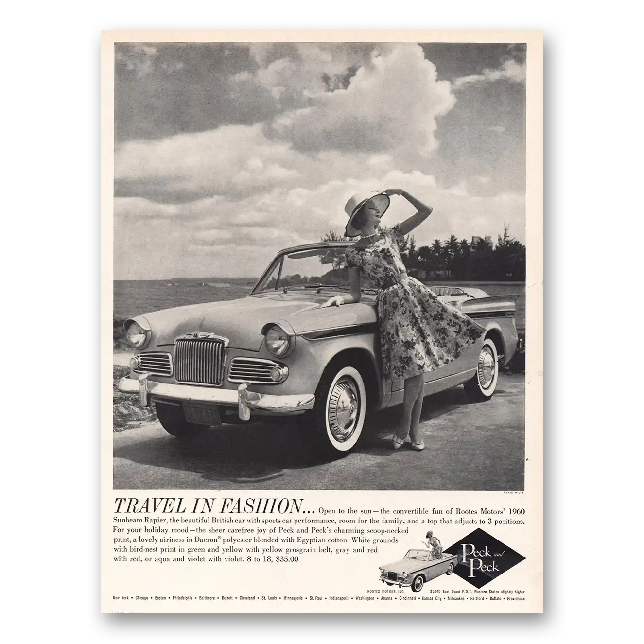 1960 Peck & Peck Fashion Print Ad | Rootes Motors