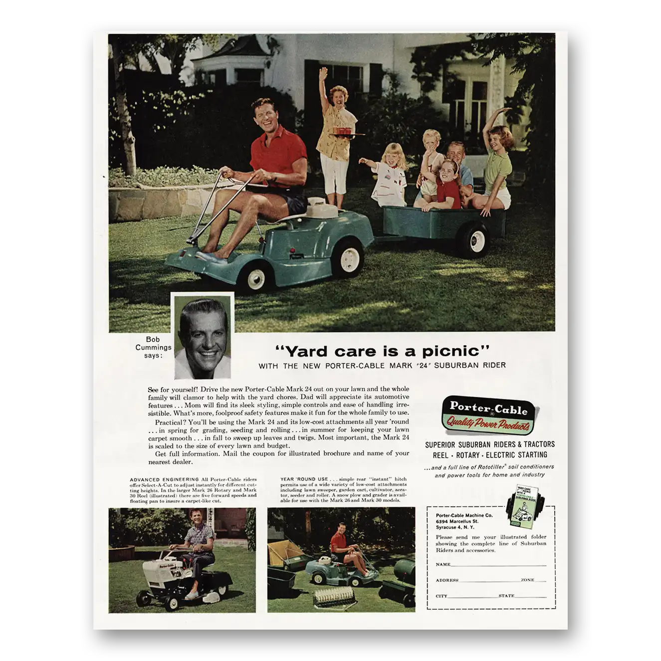 1960 Porter Cable Suburban Rider Print Ad | Yard Care
