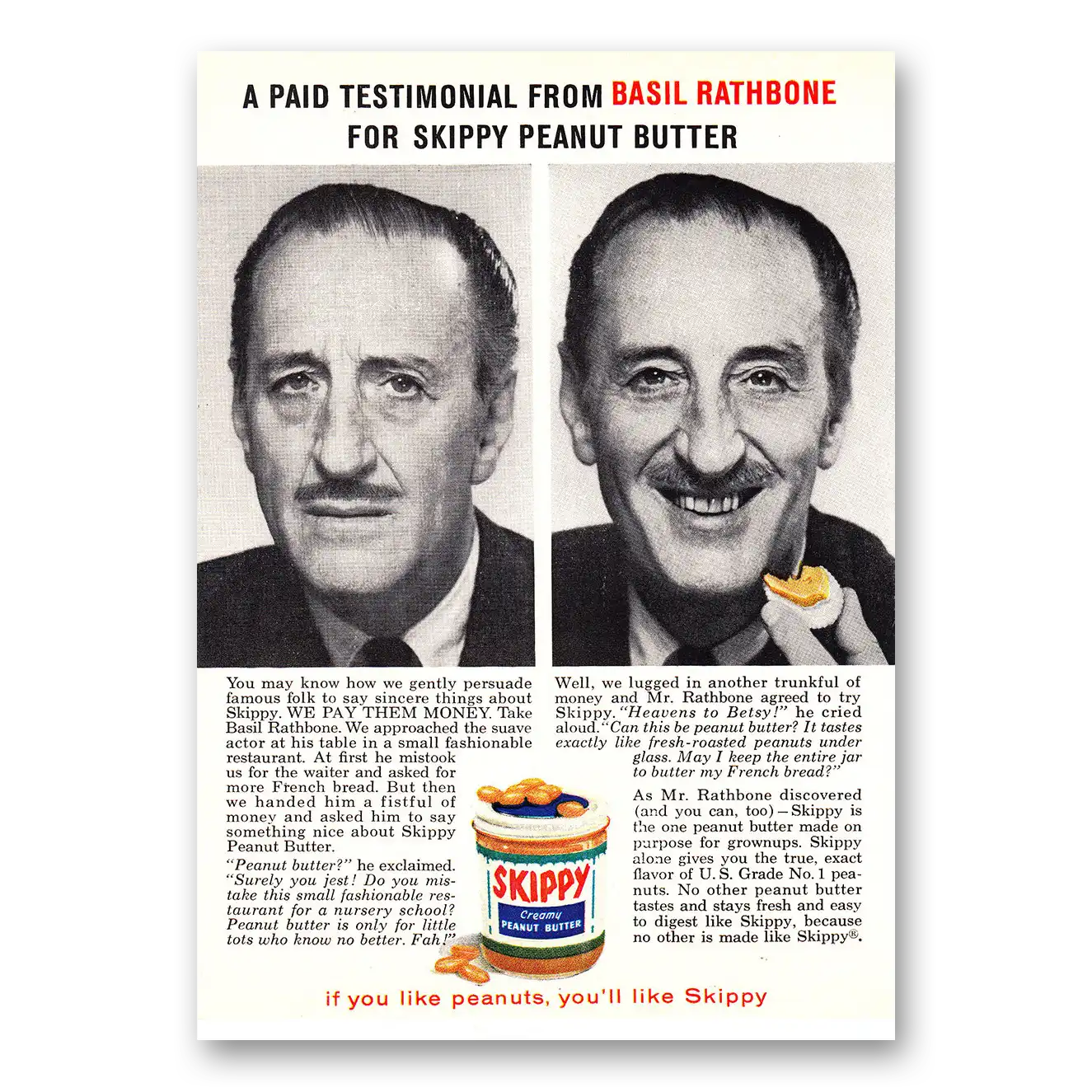1960 Skippy Peanut Butter Print Ad | Basil Rathbone