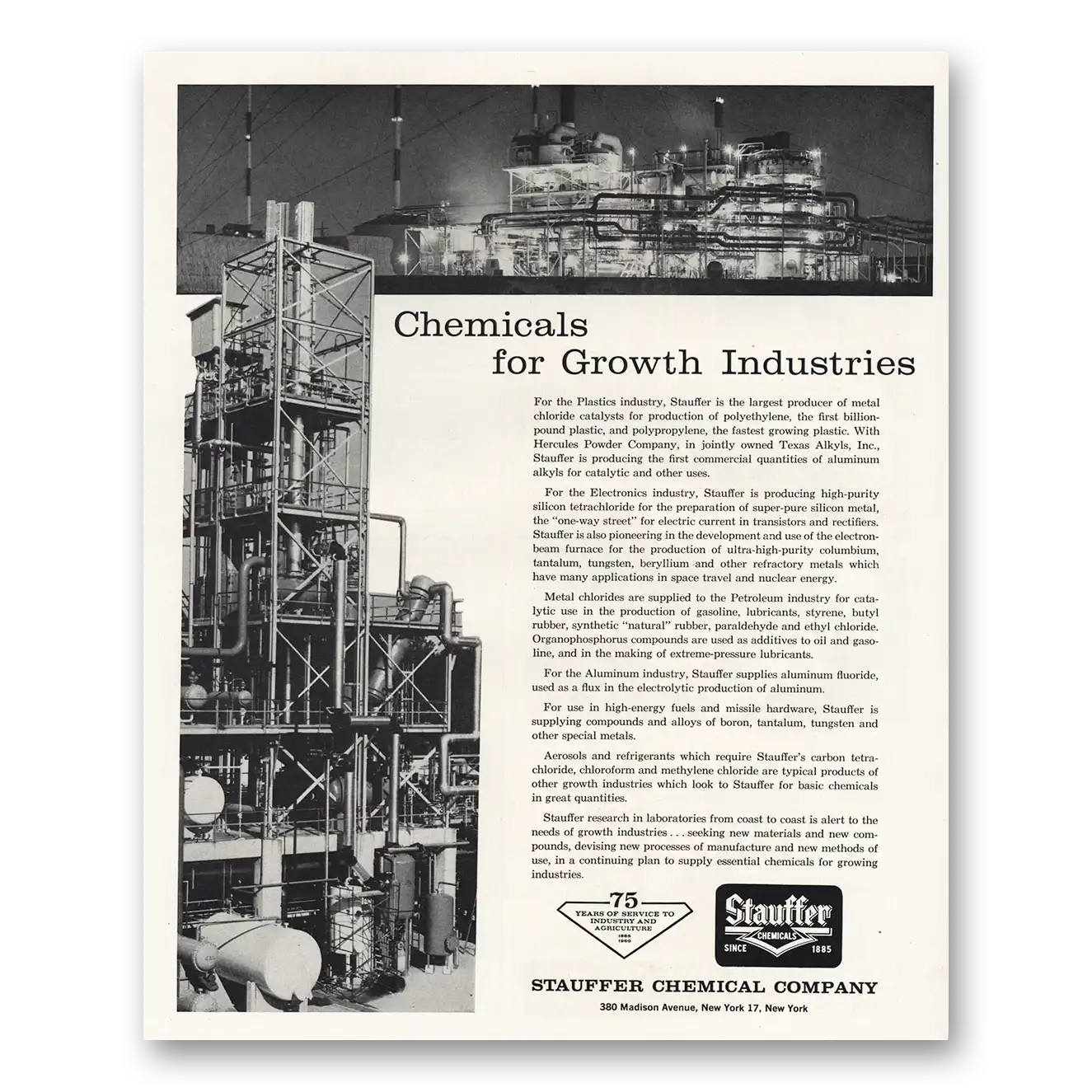 1960 Stauffer Chemical Print Ad | Growth Industries