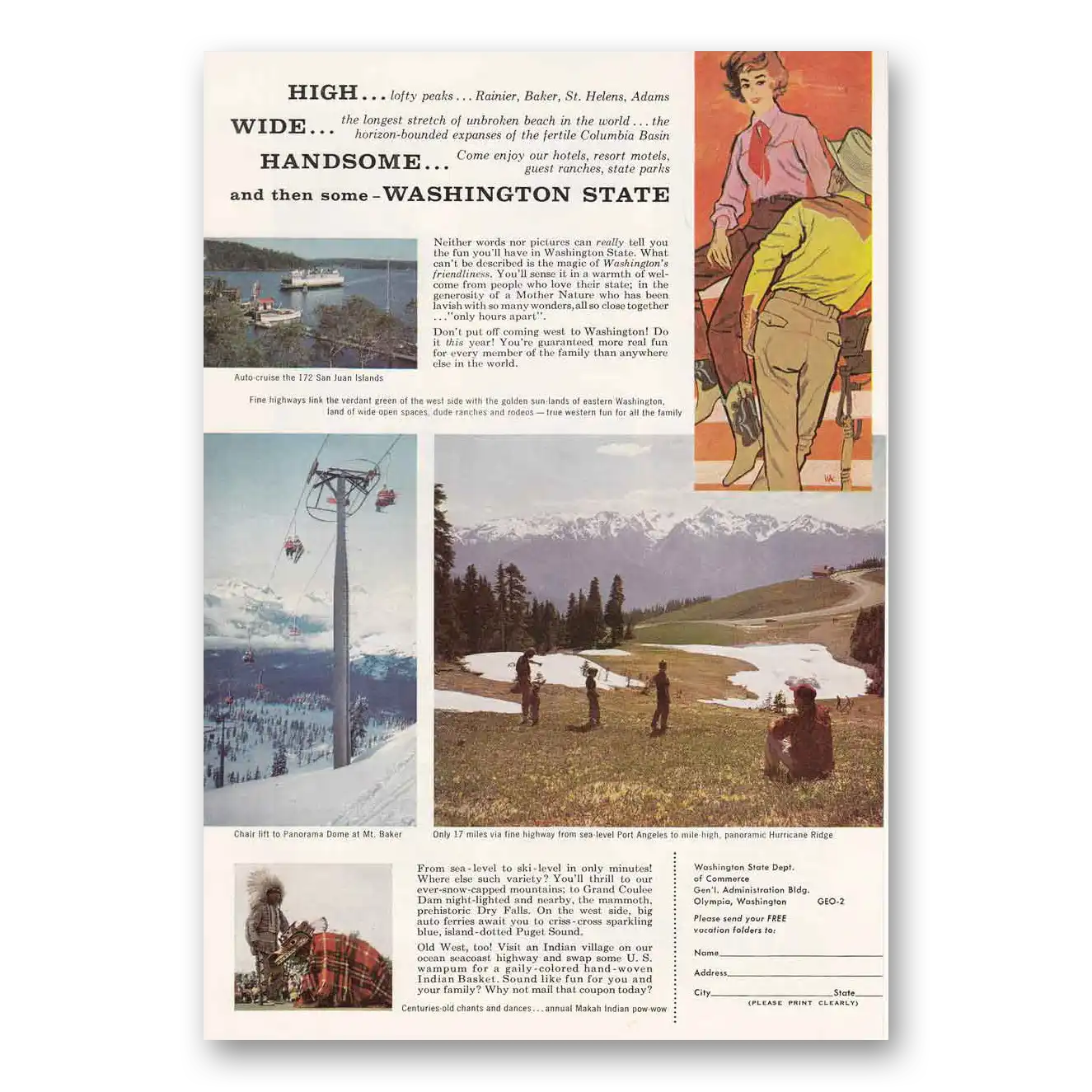 This is an original 1960 Washington print ad published by Washington Tourism.