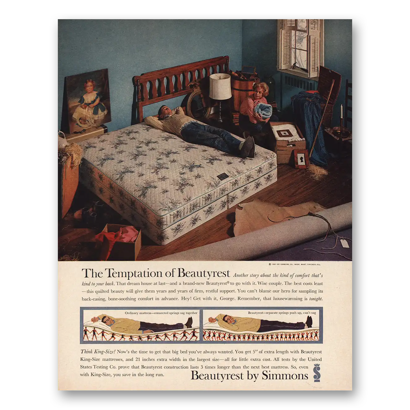 This is an original 1961 Beautyrest Mattress print ad published by Simmons.