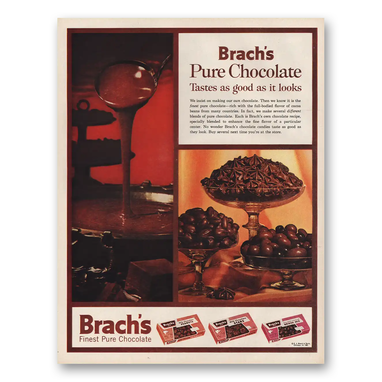 1961 Brachs Candy Print Ad | Pure Chocolate