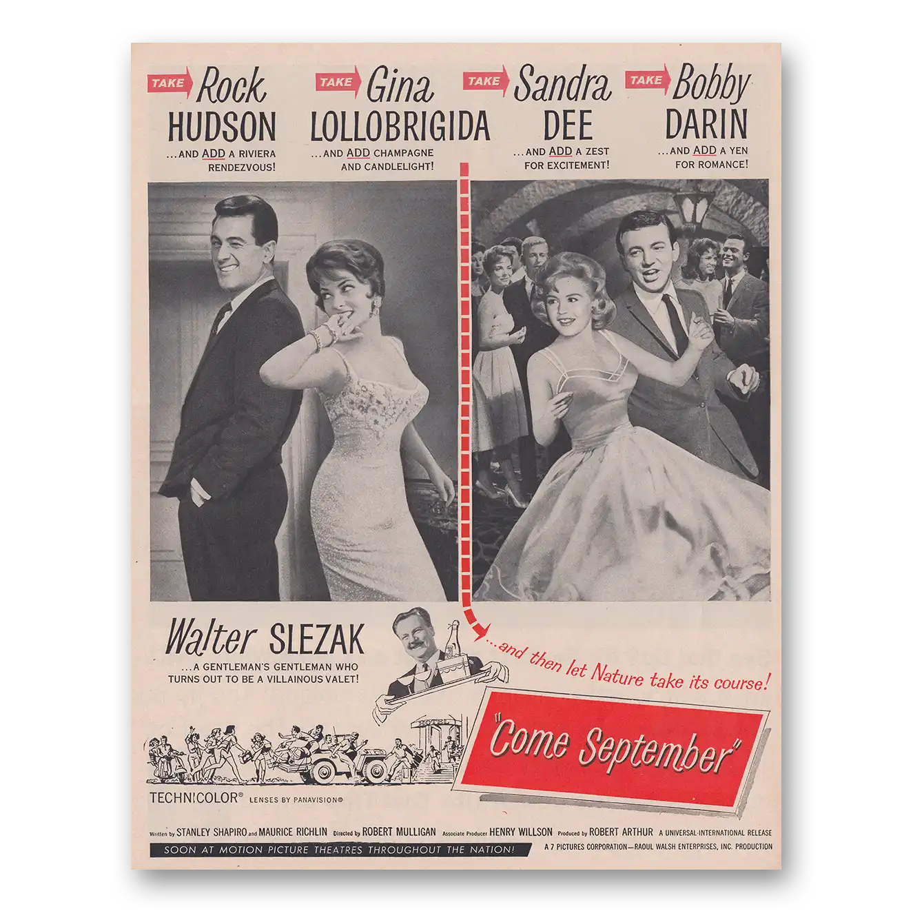 This is an original 1961 Come September Movie Promo print ad published by A7 Pictures.