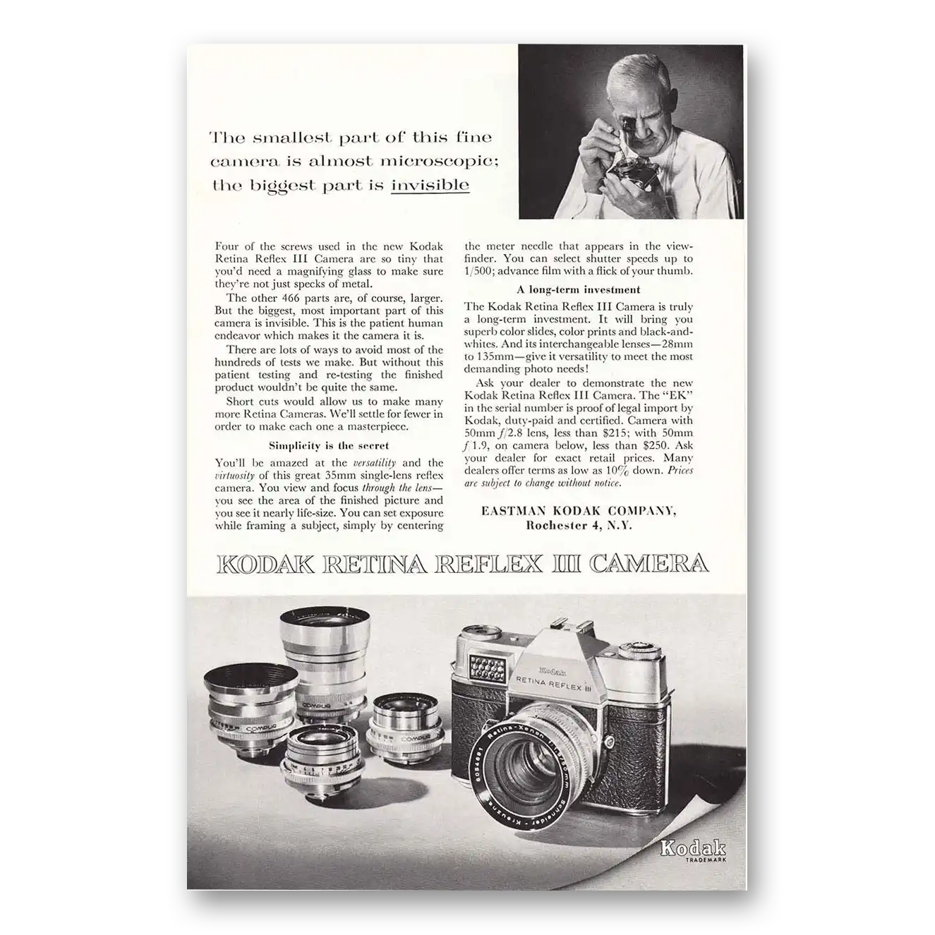 1961 Kodak Retina Camera Print Ad | Almost Microscopic