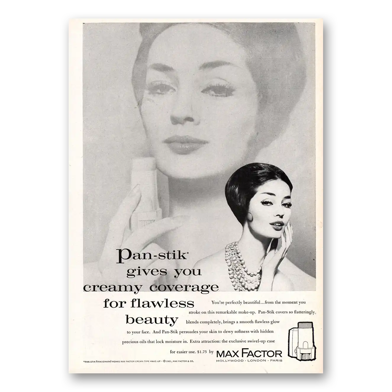 1961 Max Factor Pan Stik Print Ad | Creamy Coverage